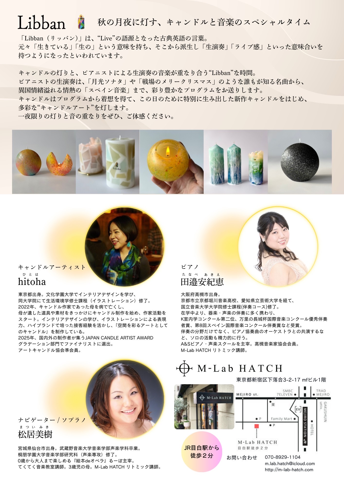 2025年11月7日(金)「Libban キャンドルアート×ピアニスト」(第16回 M-Lab HATCH 主催イベント)