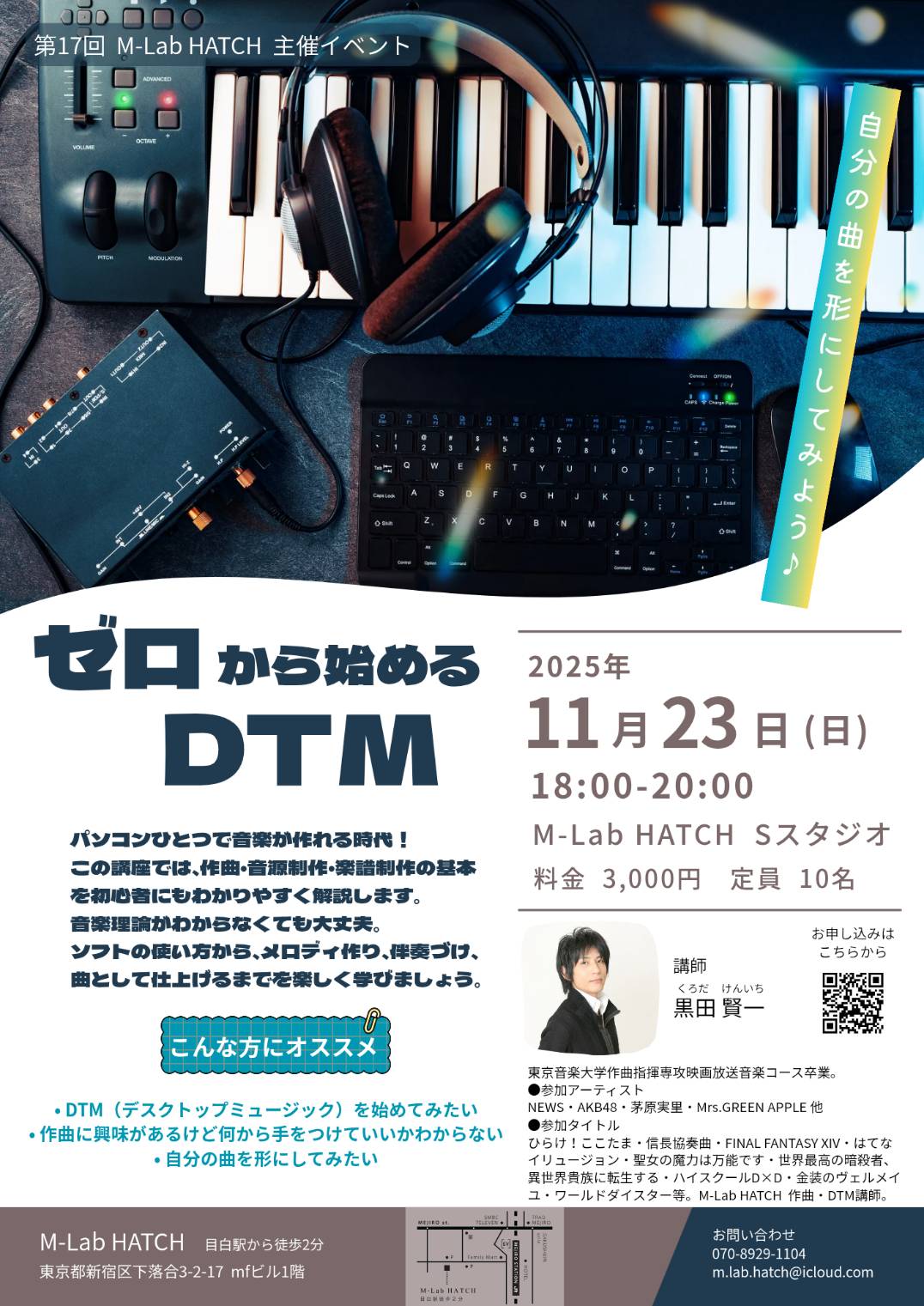 2025年11月23日(日)「黒田賢一 ゼロから始めるDTM」(第17回 M-Lab HATCH 主催イベント)