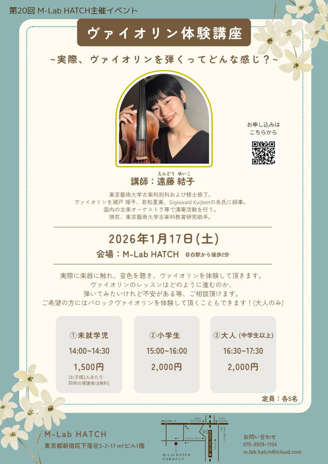 2026年1月17日「遠藤結子 ヴァイオリン体験講座」〜実際、ヴァイオリンを弾くってどんな感じ?〜(第20回 M-Lab HATCH主催イベント)