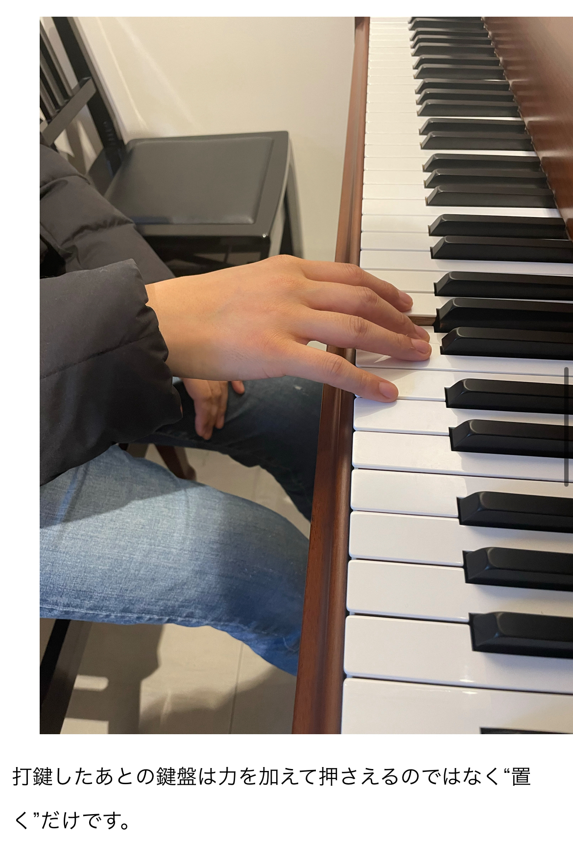 「打鍵したあとの鍵盤は力を加えて押さえるのではなく“置く”だけ」