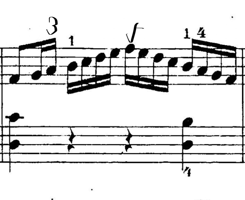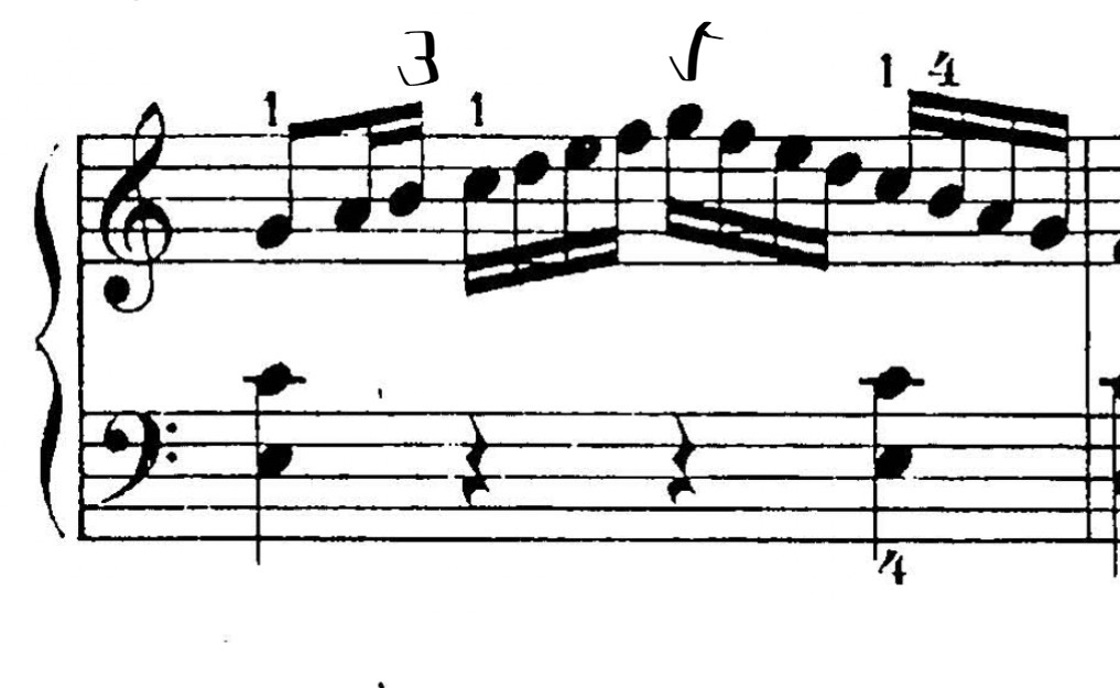 そして、この小節でも下りは4(シ)に「指くぐり」をしていますねえ?