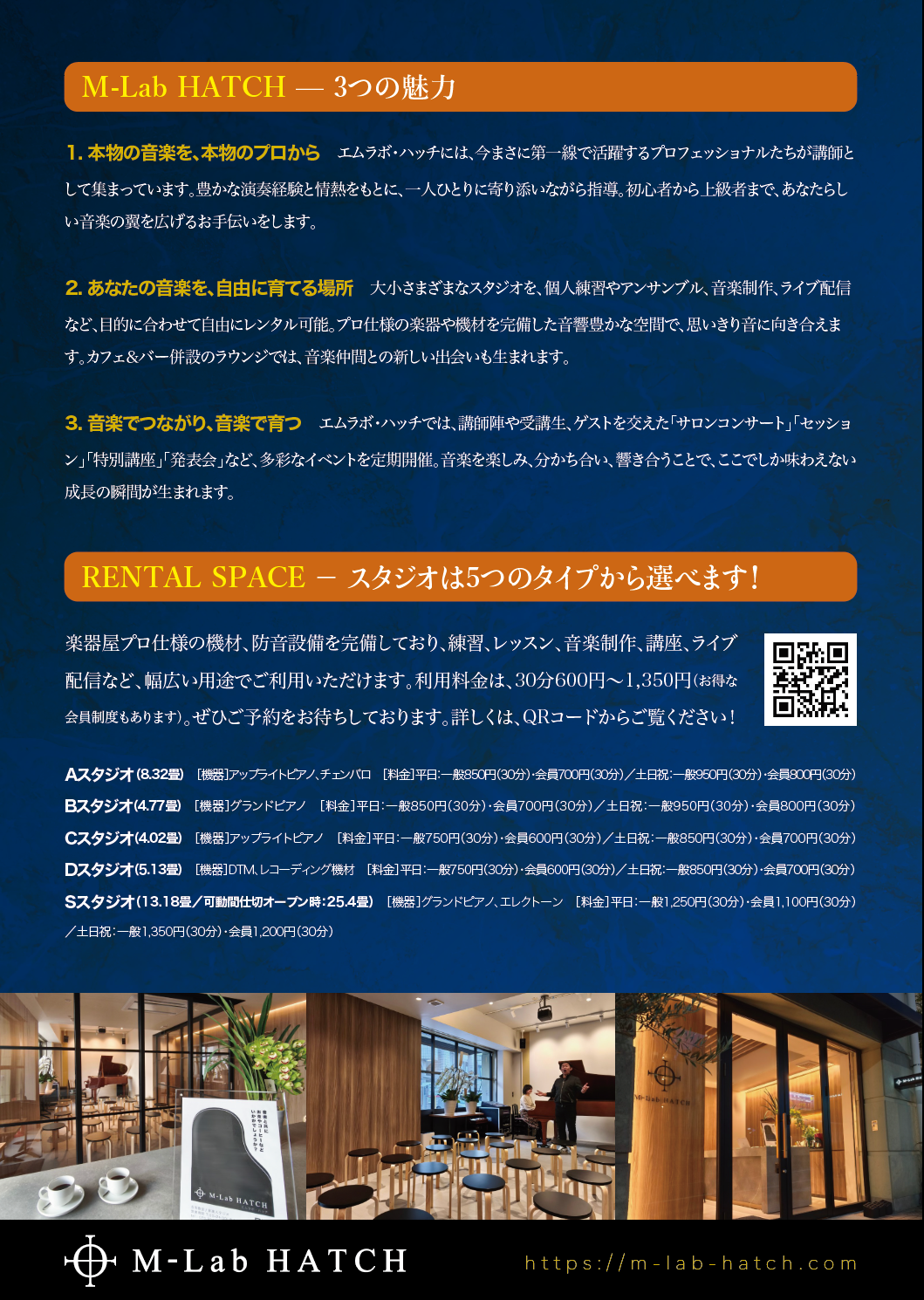 ■音楽教室/レンタルスタジオ「M-Lab HATCH」(エムラボ・ハッチ)は、2025年1月に、目白駅から徒歩2分のところにオープン。開放的で洗練された空間で、音楽教室、レンタルスタジオ、そして、サロンコンサートやワークショップなどのさまざまなイベントを開催し「すべての人にとってより良い未来をつくる」ための活動を展開している。