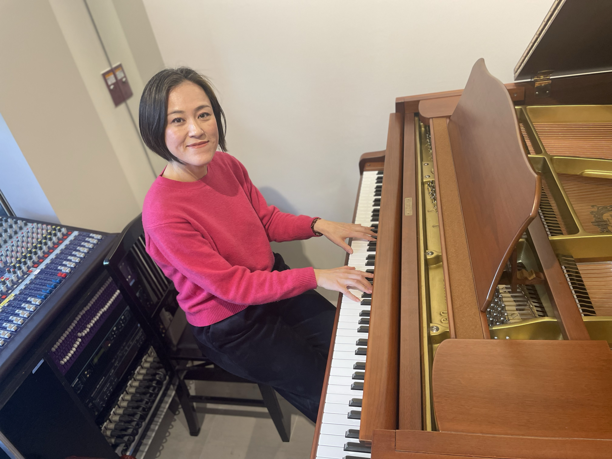 Sスタジオのグランドピアノを弾きながら一枚。